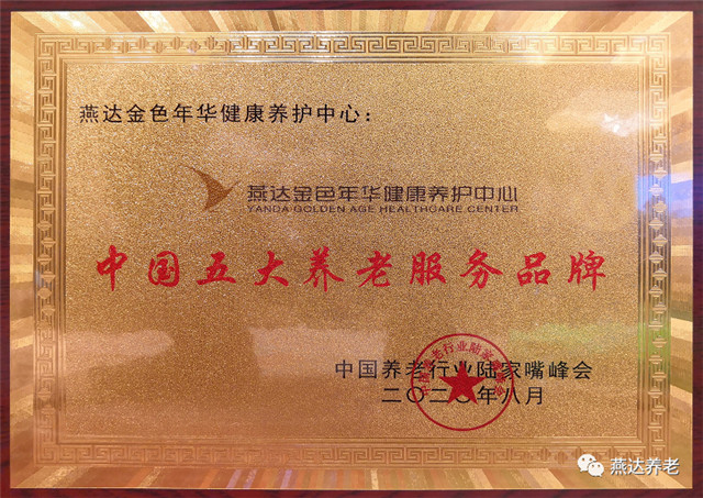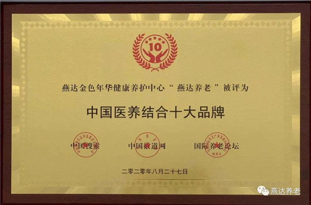 2020年8月27日,燕達金色年華健康養(yǎng)護中心分別于《第五屆中國養(yǎng)老行業(yè)陸家嘴峰會》、《中國國際養(yǎng)老產(chǎn)業(yè)博覽會中國養(yǎng)老十大品牌評選》兩項活動中捷報頻傳,喜獲“中國五大養(yǎng)老服務(wù)品牌”及“中國醫(yī)養(yǎng)結(jié)合十大品牌”兩項殊榮。